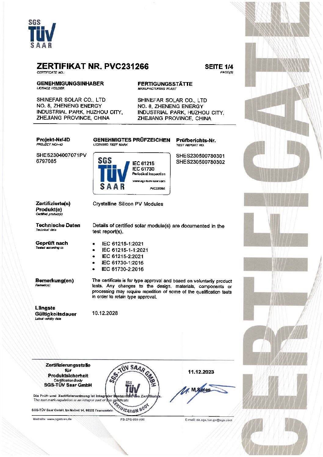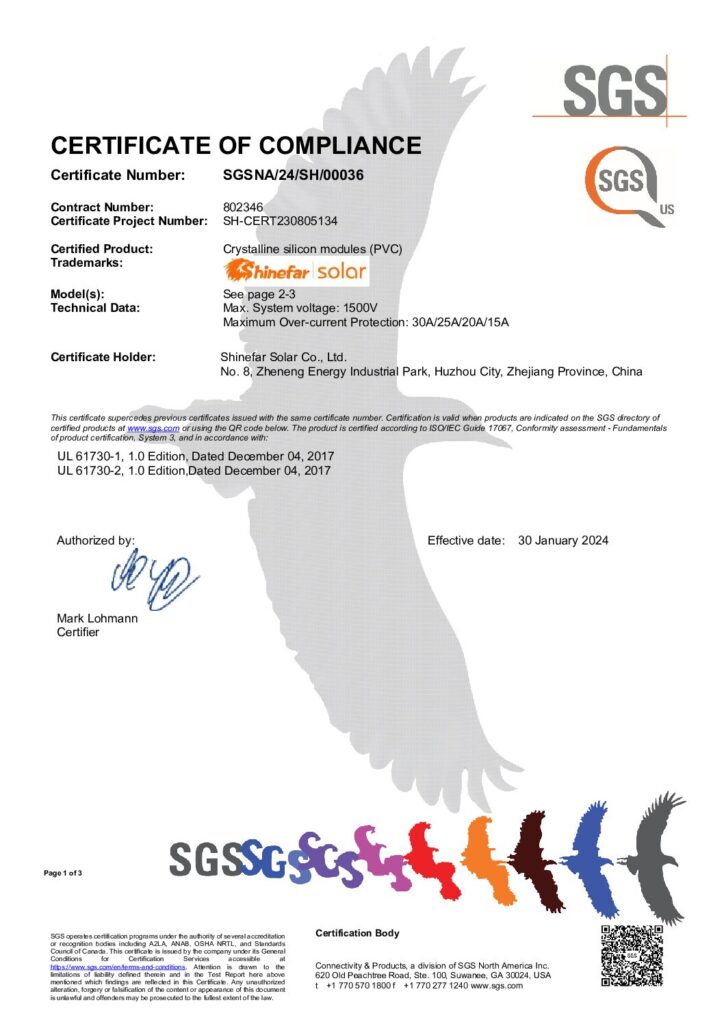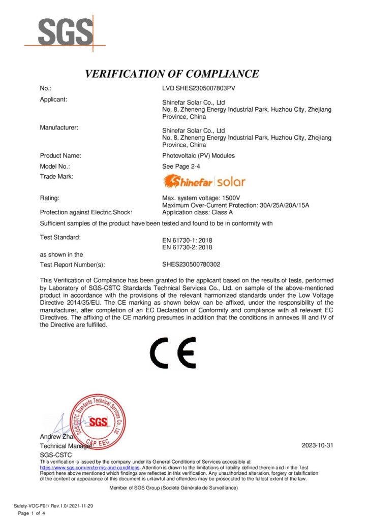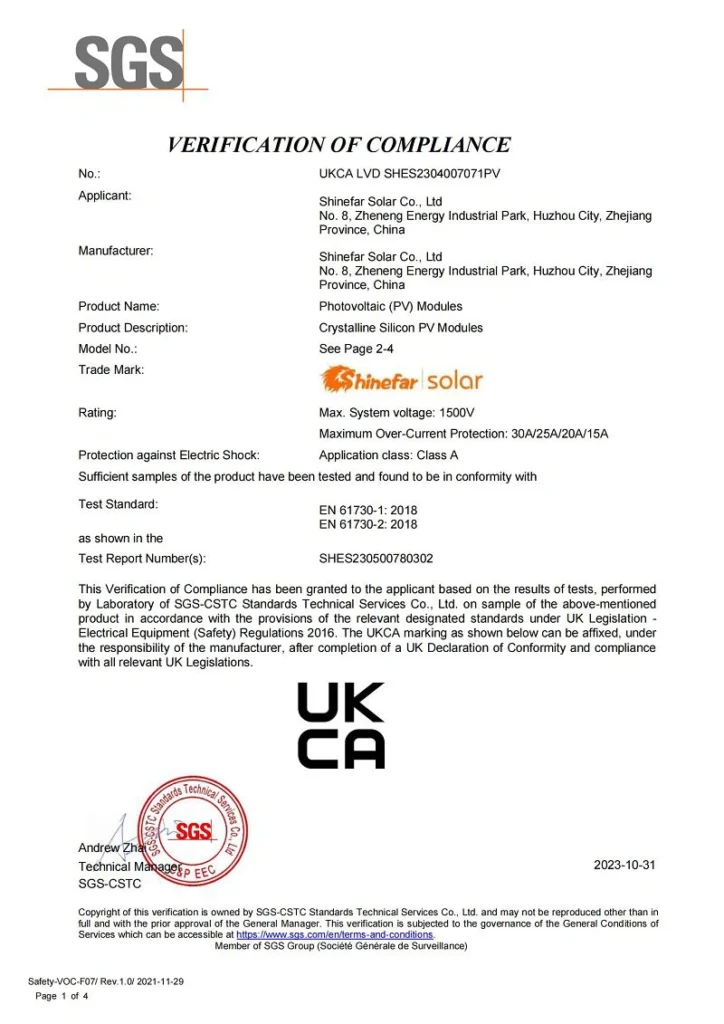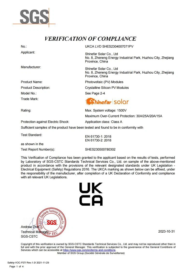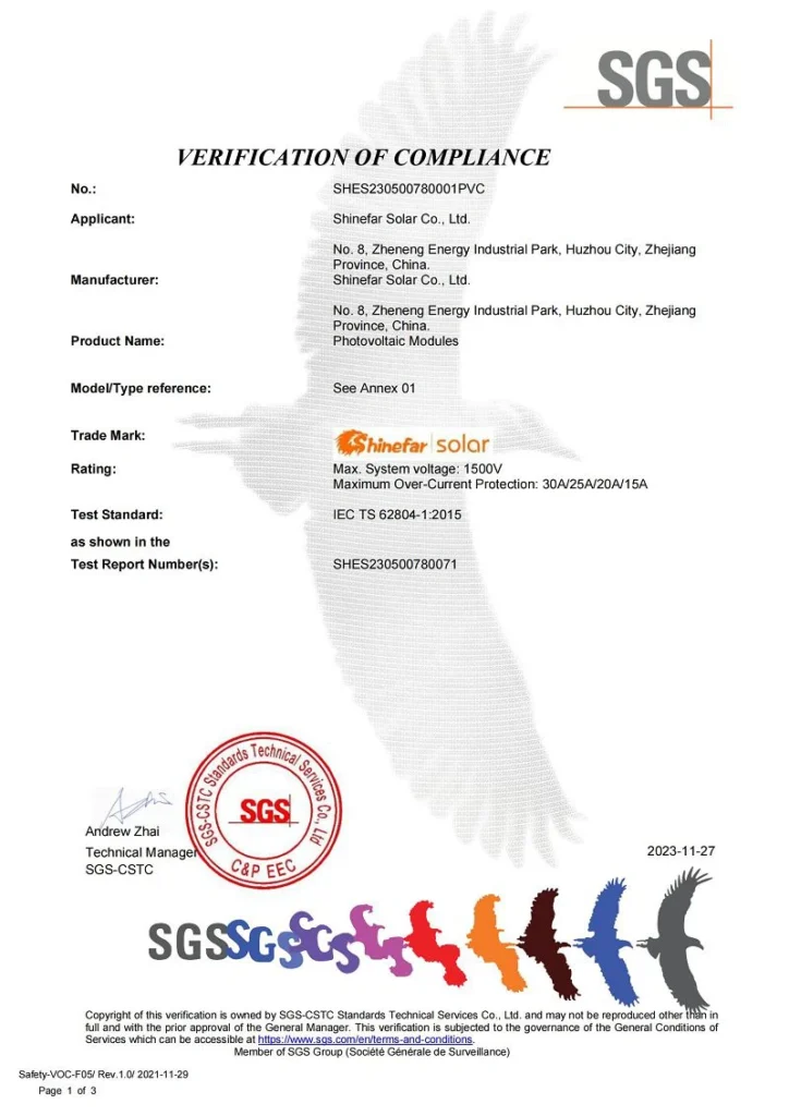 En Shinefar Solar, contamos con un equipo de técnicos altamente experimentados que impulsan nuestro éxito. Ofrecemos soluciones integrales para la construcción de proyectos fotovoltaicos conectados a la red e híbridos. Como empresa nacional de alta tecnología, galardonada con varios premios, poseemos una amplia cartera de patentes, incluyendo 5 patentes de invención y 29 patentes prácticas. Nuestro compromiso con la calidad se ve reforzado por certificaciones como IEC 61215, IEC 61730, IEC 61701, IEC 62716, IEC 62804, UKCA, UL, INMETRO y CQC.